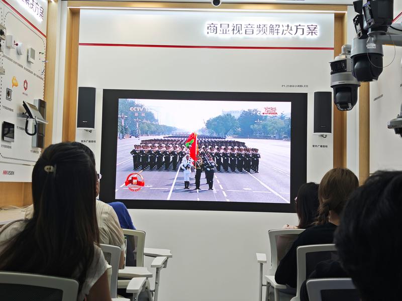 選擇在海康威視展廳觀看閱兵儀式別有深意。海康威視作為全球領先的科技企業,其展示的智能物聯、AI識別等先進技術,與閱兵儀式上展示的國防現代化建設成果交相輝映,展現了我國科技創新的強大實力。