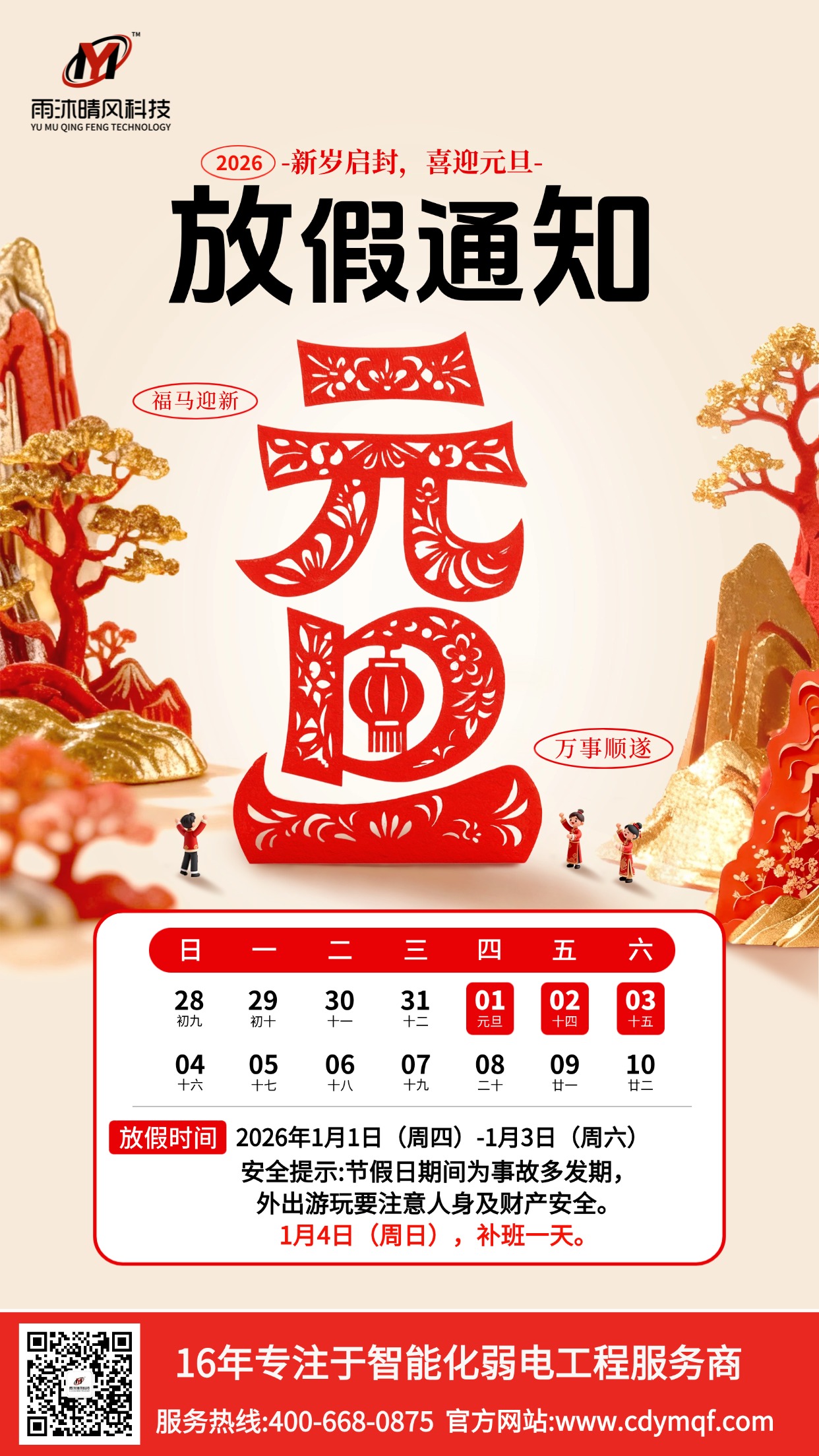 雨沐晴風科技.2026年元旦節放假通知