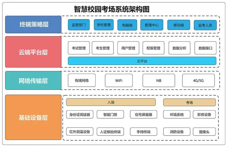 綜上所述,智慧考場建設包含的系統有考務管理系統、身份識別與驗證系統、監控與安全系統、作弊檢測與防范系統和數據分析與評價系統等多個系統,這些系統能夠實現考試管理的數字化、智能化和信息化,提高考試的公平性、準確性和安全性。
